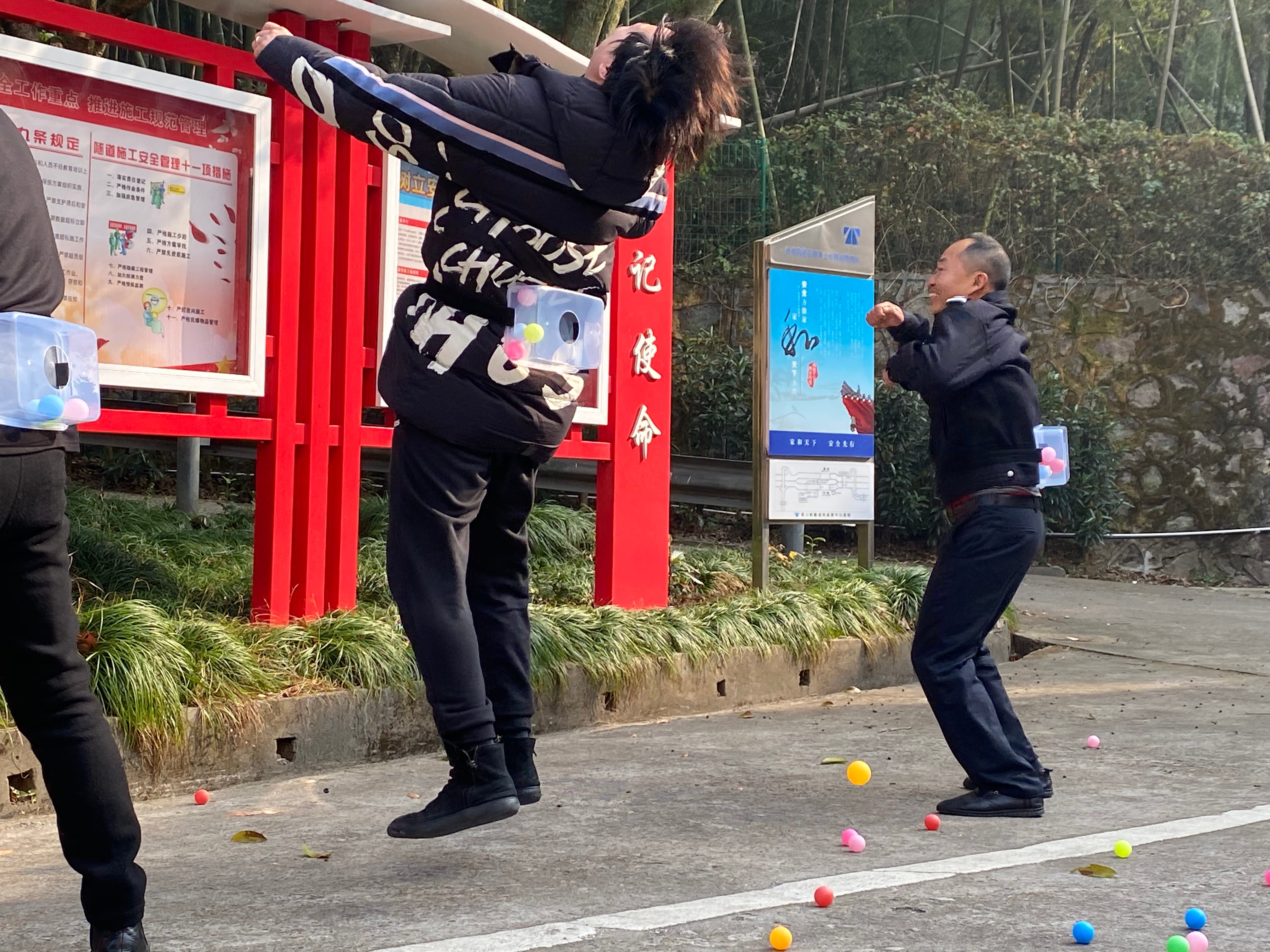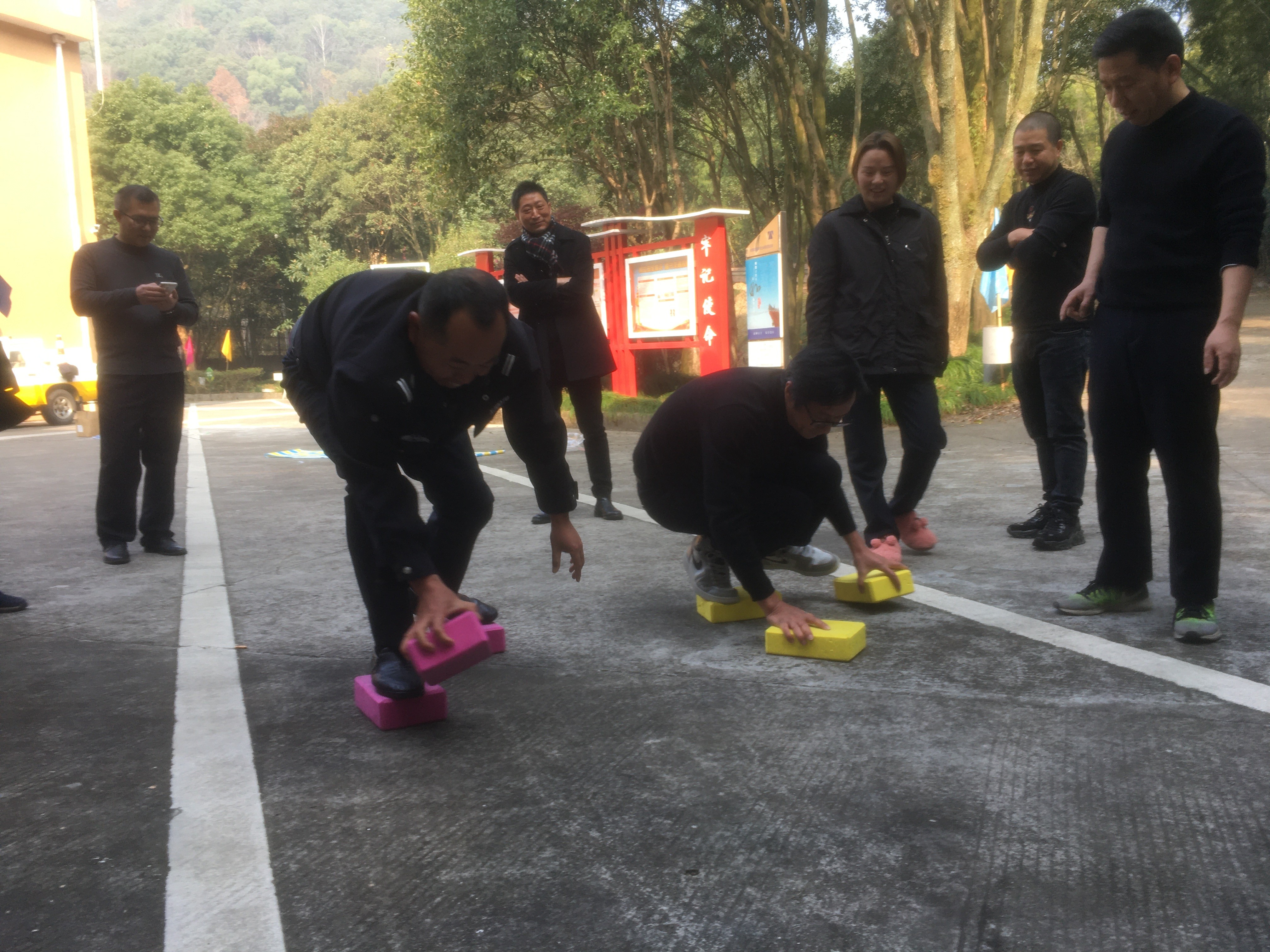 12月29日上午,臺州高速黃土嶺隧道所舉辦了一場別開生面的趣味運動會,寬闊的廣場上充滿了歡聲笑語,吶喊聲、加油聲此起彼伏,隧道所領導與全體員工積極參與、共同合作。 本次“運動會”分個人與團體兩種形式,個體項目有投籃、飛鏢、電臂達人等,團體賽項目分別是無敵風火輪和摸石過河。 “預備,開始!”隨著裁判員一聲令下,摸石過河比賽開始了,選手們迅速進入狀態,彎腰、拿磚、邁腳,隊員竭盡全力地將腳下的磚塊不停地移動。兩只腳踩在一塊磚上,兩只手把另外兩塊磚不斷地向前移動。“還有5米、2米,堅持?。?/span>”隊員們個個腳疼腿軟,但毫不松懈,勇爭第一,最后執勤二隊一舉勝出。