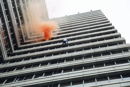 上圖為高空墜落逃生演練現(xiàn)場(chǎng)