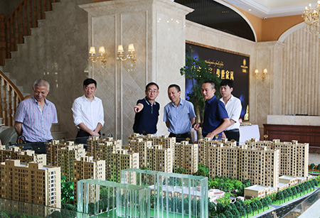 8月21日上午,集團副董事長、總經理張建平在公司財務總監章彩霞、工會主席項義超、安全總監項同富的陪同下,來到仁和房產公司了解樓盤首期銷售情況。