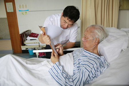 圖為老干部陳幸均在病床上簽訂股權轉讓手續
