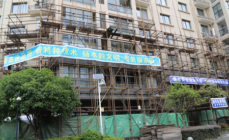 圖為溫嶺水韻新邨外墻維修工程現(xiàn)場 在結(jié)束文鼎苑工地的檢查后,羅小將來到溫嶺水韻新邨小區(qū)外墻修復(fù)工程的現(xiàn)場進(jìn)行安全檢查。在現(xiàn)場,他仔細(xì)查看了外墻腳手架搭建情況,詳細(xì)了解相關(guān)安全措施的落實情況,他囑咐施工方一定要把安全各項措施做細(xì)做實,保質(zhì)保量地完成外墻修復(fù)工程。 包啟曉