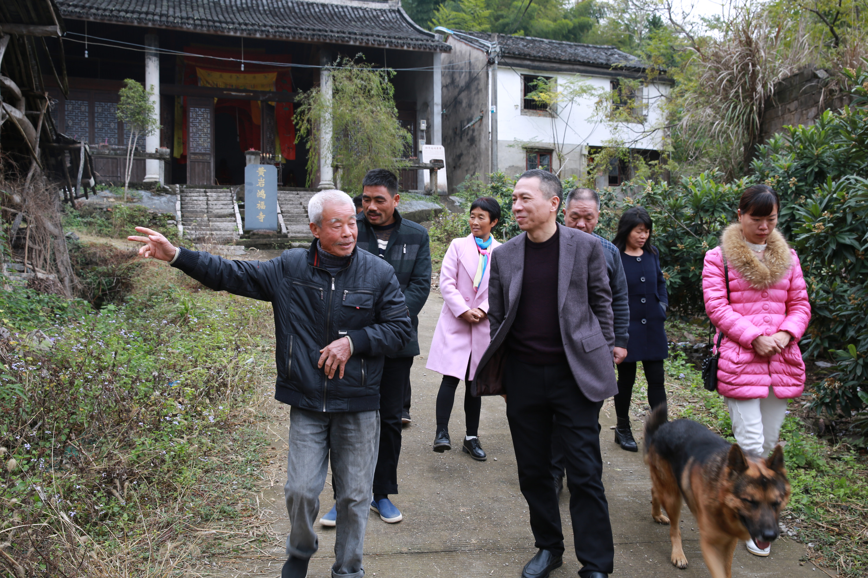 圖為公司黨委副書記、總經理張建平實地踏勘鴻福寺原址