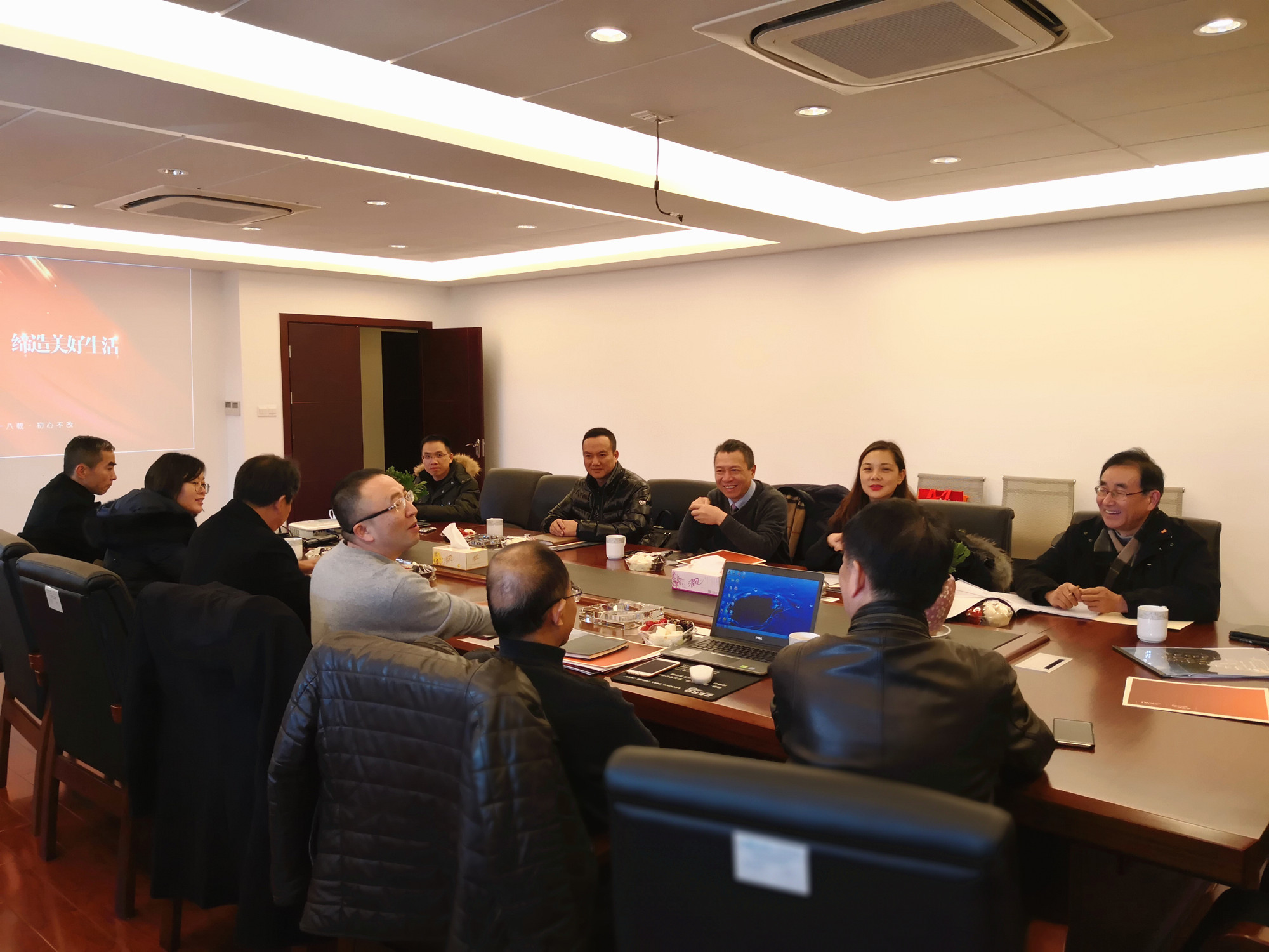 圖為雙方交流現場 在鎮江考察期間,考察團一行與臺州市水務集團股份有限公司總經理章君周、副總經理陳天嚶及浙江銘基置業有限公司的有關人員進行深入交流,并詳細聽取了關于福臨廣場二期項目情況的介紹。 張建平等領導在考察會上對項目合作方式、開發愿景等問題展開了坦誠溝通。經過慎重地探討和分析,雙方達成了初步的合作意見,并一致表示,臺州市屬國企之間開展合作具有良好的先天優勢和堅實基礎,要進一步加強聯系,擴大利益共同點,著力推動項目朝著互惠共贏的目標邁進。 曹恩林
