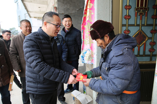 圖為圖為集團副總經理章海峰慰問困難群眾 隨后,兩位領導到每戶幫扶困難家中,給他們送去集團的慰問與新春祝福,特別是塘上村百歲抗戰老兵鮑先年,老人家雖然已經102歲,但是依然精神矍鑠,看到章海峰送上的慰問金,鮑先年還舉手敬禮,盡顯軍人風采。對此,在場所有人無不感到欣慰與高興。 此次走訪共慰問44戶困難戶。走訪過程中,受幫扶慰問的困難家庭深受感動,他們深感集團的溫暖,并表示在今后的生活中,努力克服困難,積極面對人生,不辜負集團對自己的親切關懷與幫助。 鄭蔚 張波