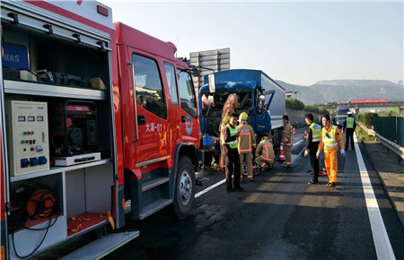 控制好現場以后,消防人員利用擴張器展開救援,但是成效并不明顯。7點左右,救護車已然到達現場,但是駕駛員依舊卡在車中。為保障駕駛員生命安全,消防人員并未進行強行拆除,而是召喚了一輛帶有氣泵設備的專業(yè)消防車趕往現場,利用氣泵剪進行破拆,經過眾人的努力,終于將臉上鮮血直流的駕駛員成功救出,并送上救護車。7點30分,救護車與消防人員撤離現場,施救中心人員進行善后工作,并將事故車輛拖離現場。8時許,高速恢復通行。