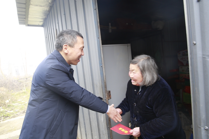 圖為集團(tuán)總經(jīng)理張建平慰問(wèn)塘上村老人