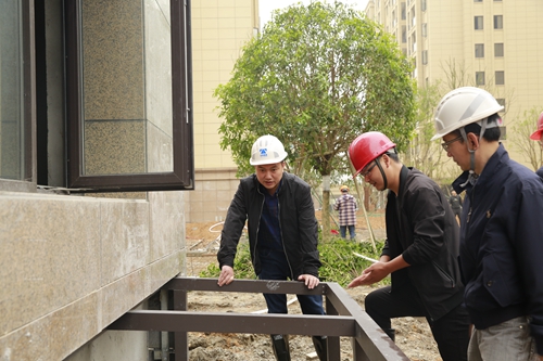 圖為公司副總經(jīng)理羅小將帶隊在文鼎苑工地檢查
