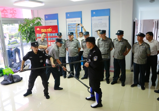 本次活動分成防暴器械使用培訓、器械使用練習和防盜搶應急演練三個環節,以培訓和演練相結合的形式開展,以有效提高一線職工防暴器械使用技能和突發事件應急處置能力?;顒友埩它S巖公安分局巡特警大隊大隊長盧健星,該大隊獵豹突擊隊隊員、專職教官盧尚明到場指導。