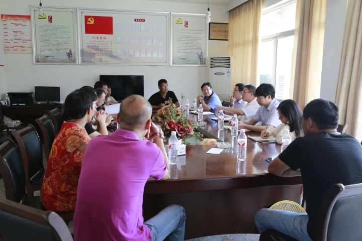 圖為陳文波一行與當地村干部座談