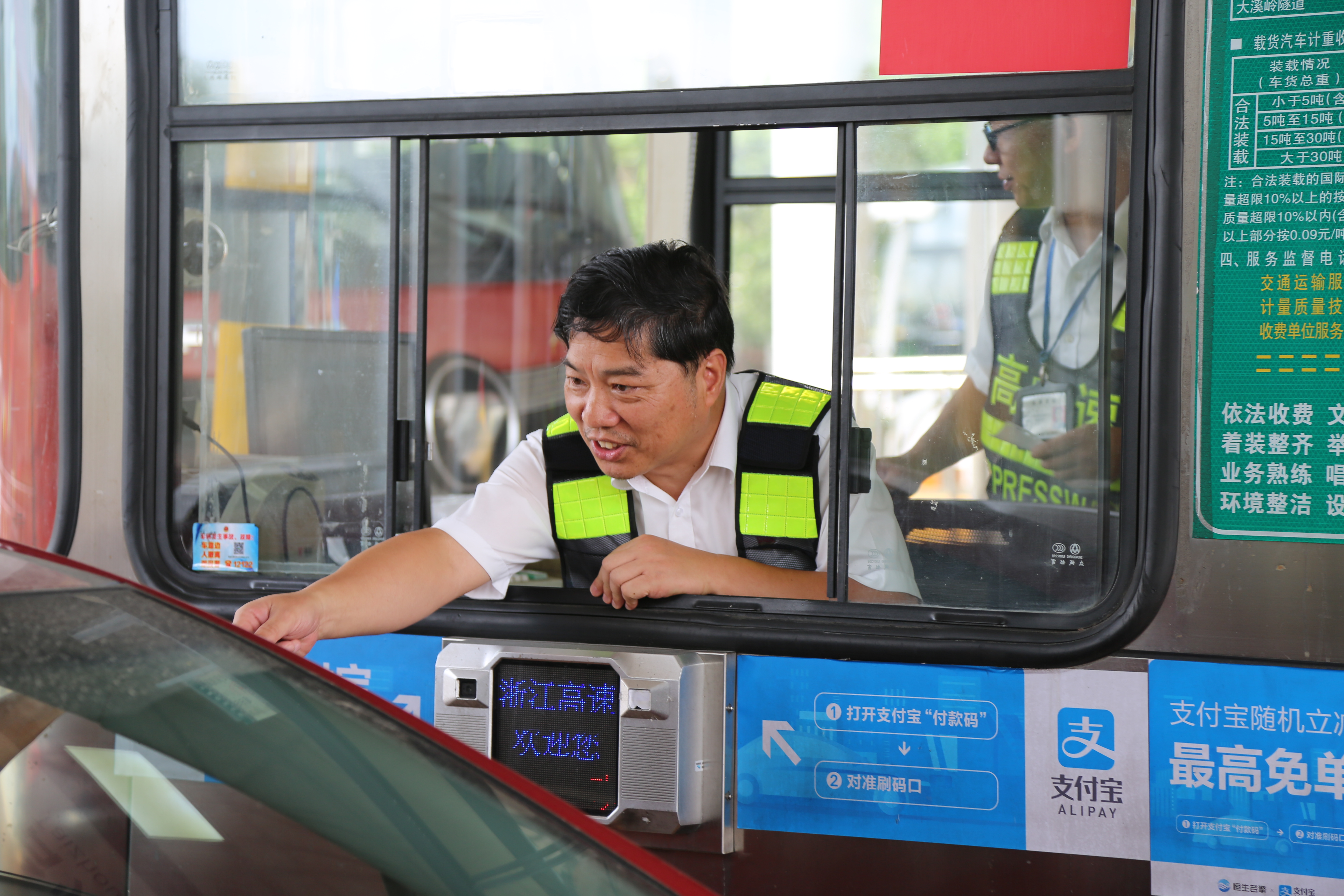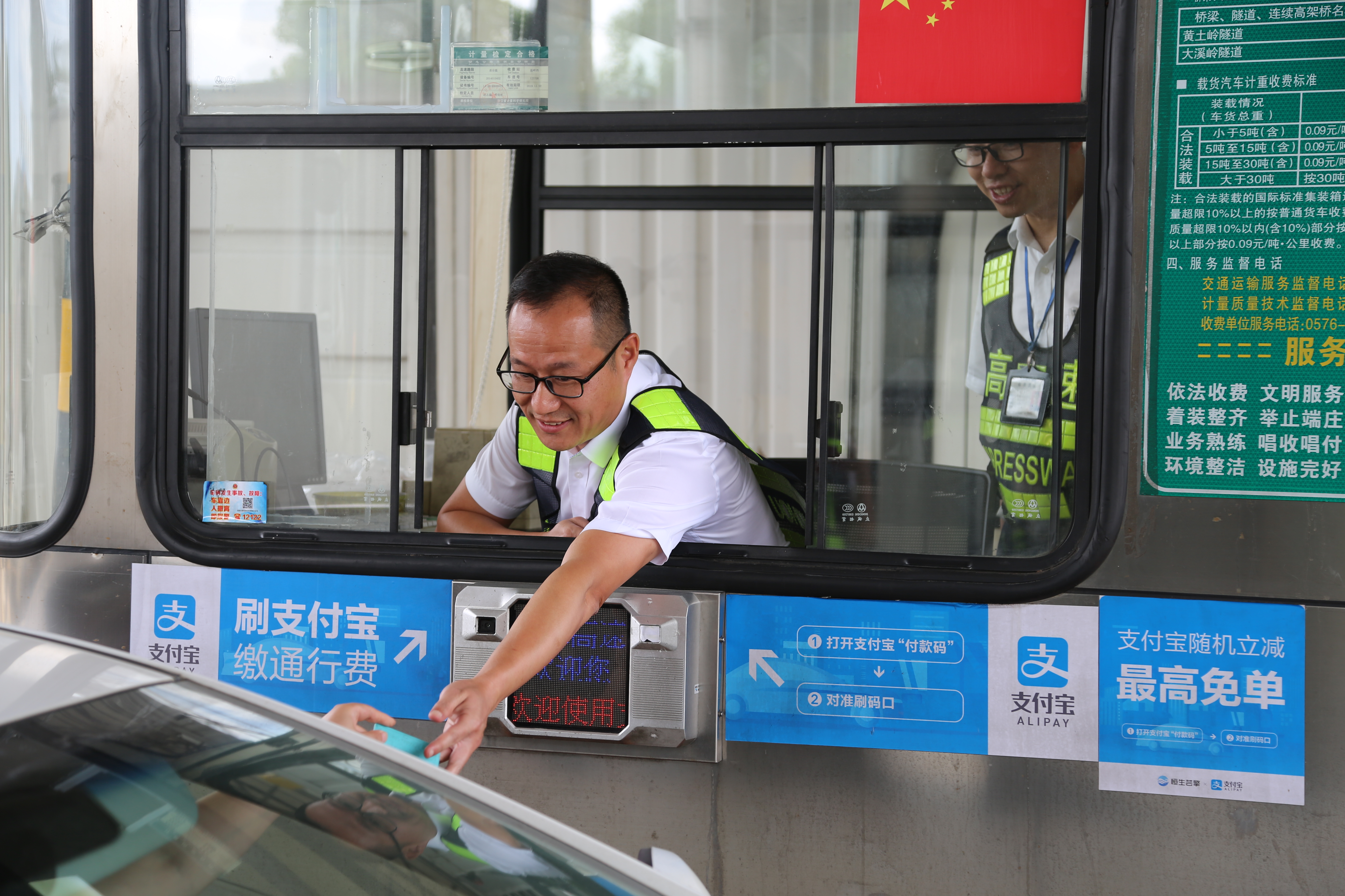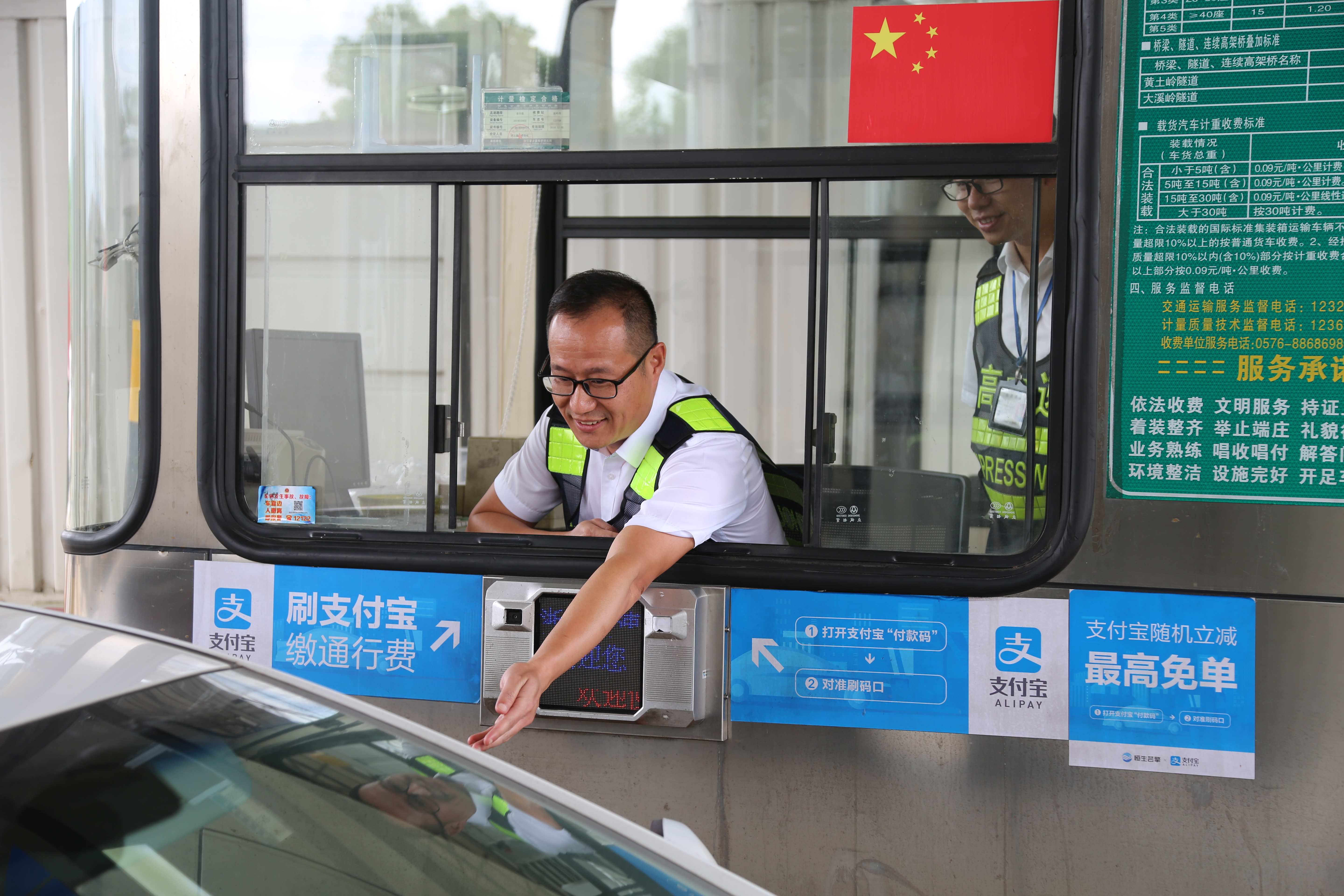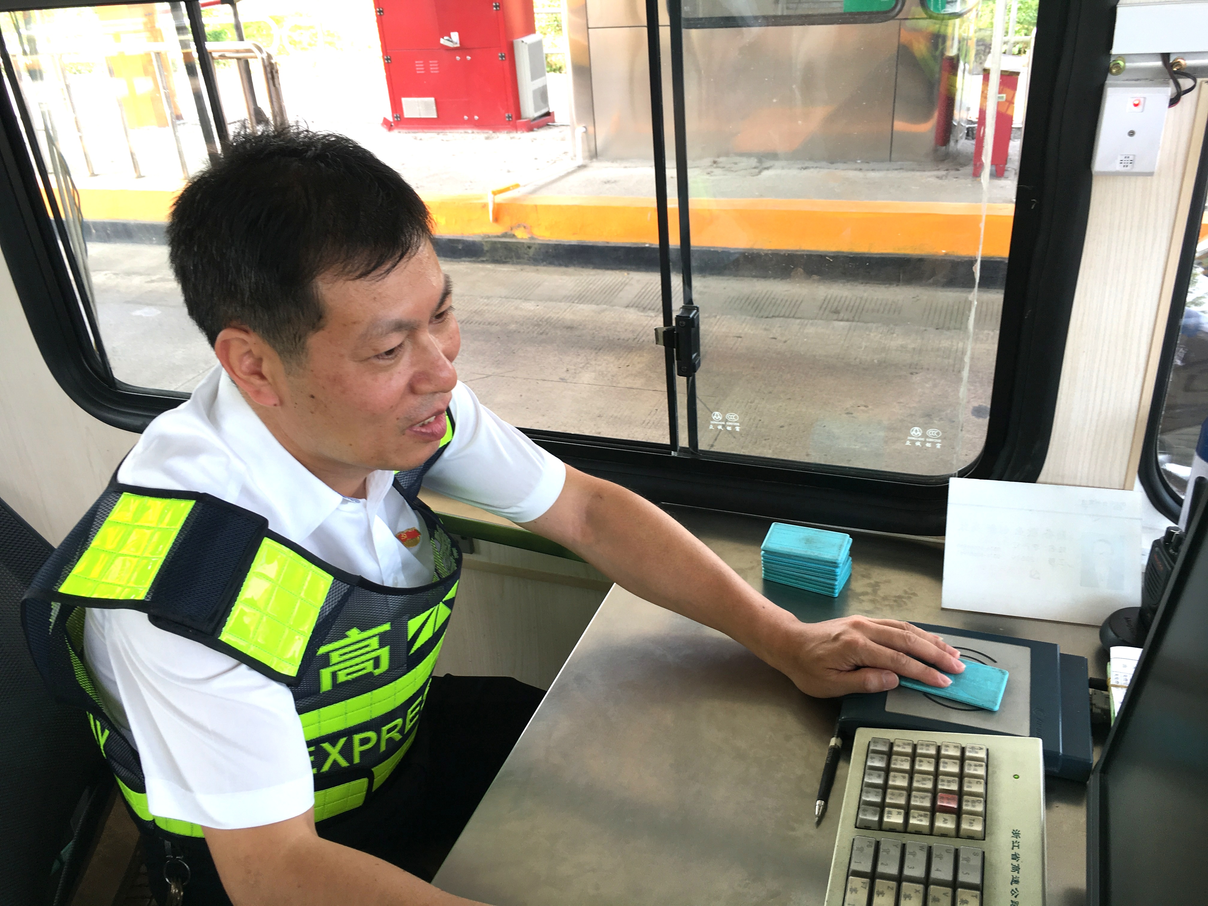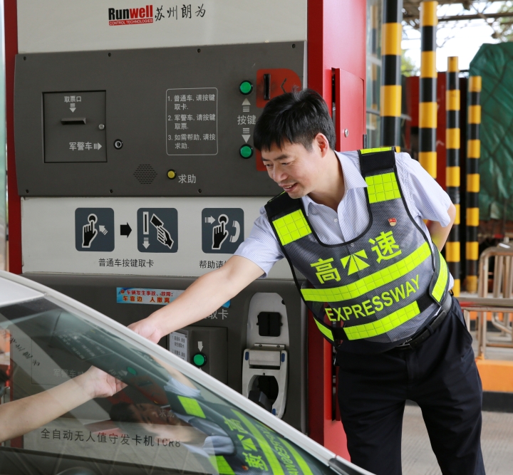 而在對面發(fā)卡的安全總監(jiān)項(xiàng)同富正襟危坐,等待著車子的駛?cè)耄?/span>“記住動作就忘記微笑,笑起來又忘記要說什么......真有點(diǎn)手忙腳亂的,做好收費(fèi)員,不容易?!?/span>