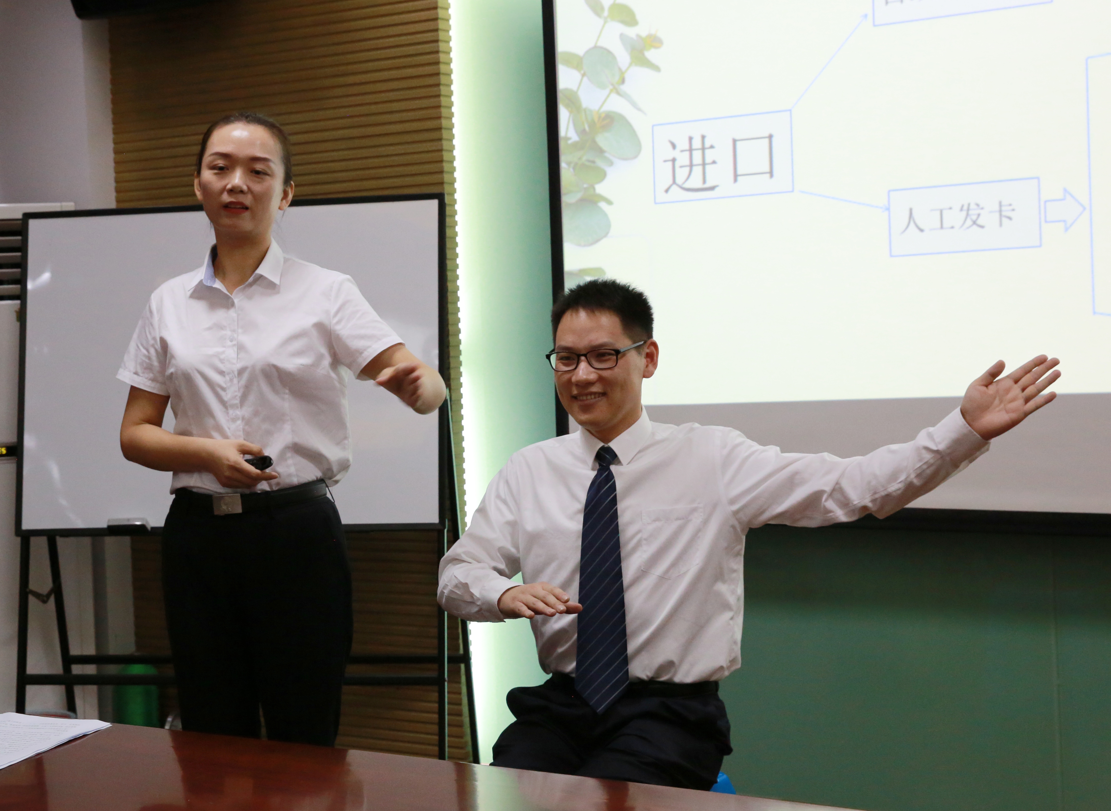 隨后,臨海南收費(fèi)所文明服務(wù)培訓(xùn)師徐蘇蘇通過PPT,以輕松風(fēng)趣的講課風(fēng)格,給班子領(lǐng)導(dǎo)們上了一堂儀容儀表講解、操作流程演示、文明服務(wù)動作以及心理建設(shè)的課,并通過員工真人示范文明服務(wù)中坐姿、眼神、聲音等練習(xí),令在場的受訓(xùn)者耳目一新。