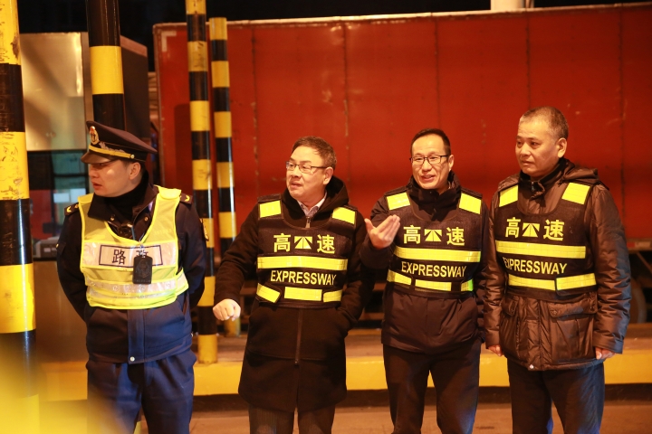 為確保取消省界收費站工作平穩過渡,12月31日,臺州市副市長林先華、市交通局局長陸善福、市公路局局長馬德勝,以及當地政府部門領導紛紛來到集團一線收費站,協力助推取消高速公路省界收費站工作順利開展。