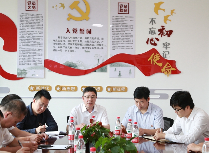 圖為陳文波一行聽取該所廉政文化建設(shè)經(jīng)驗(yàn)介紹