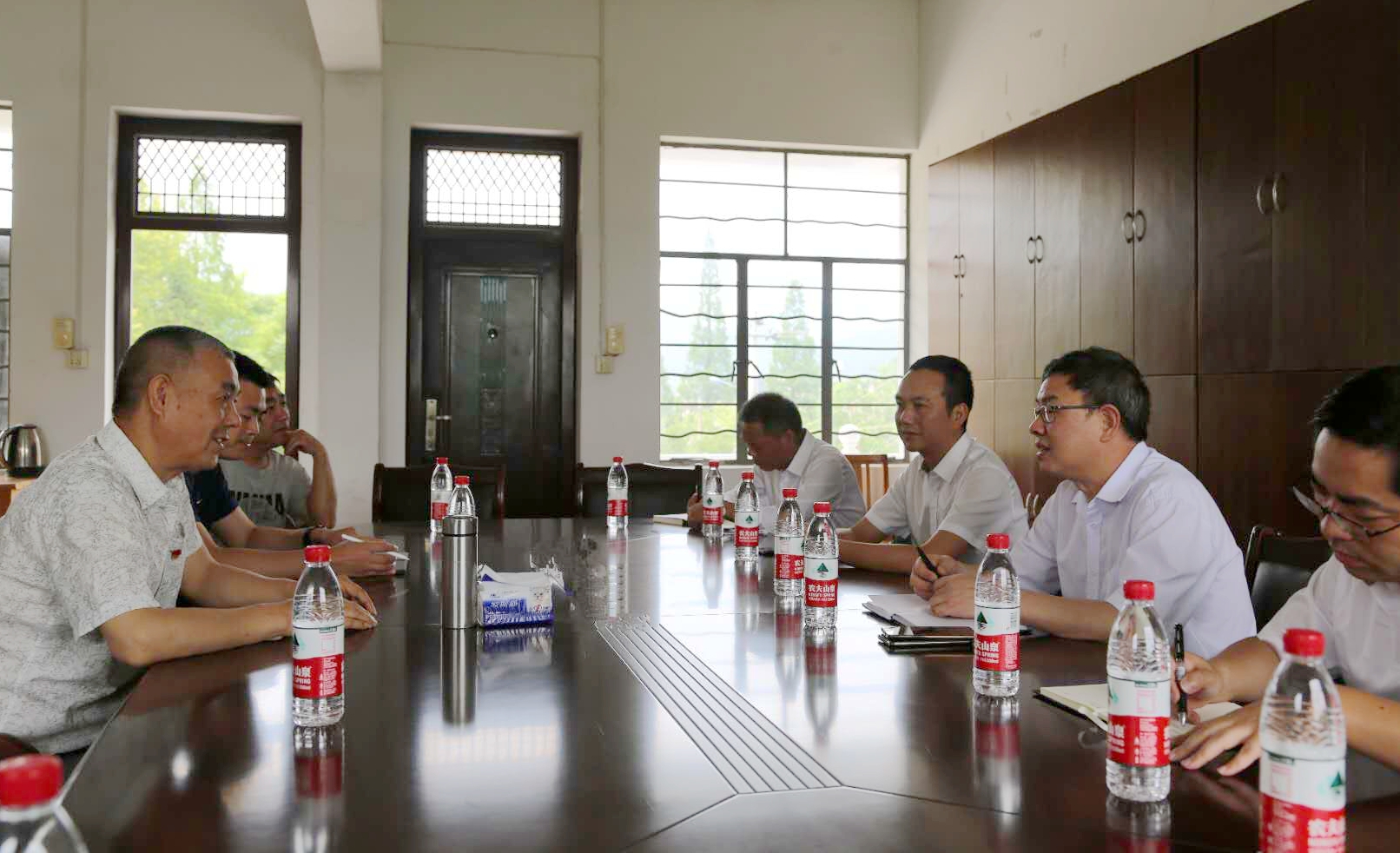 圖為陳文波與村兩委班子以及駐村指導(dǎo)員座談交流