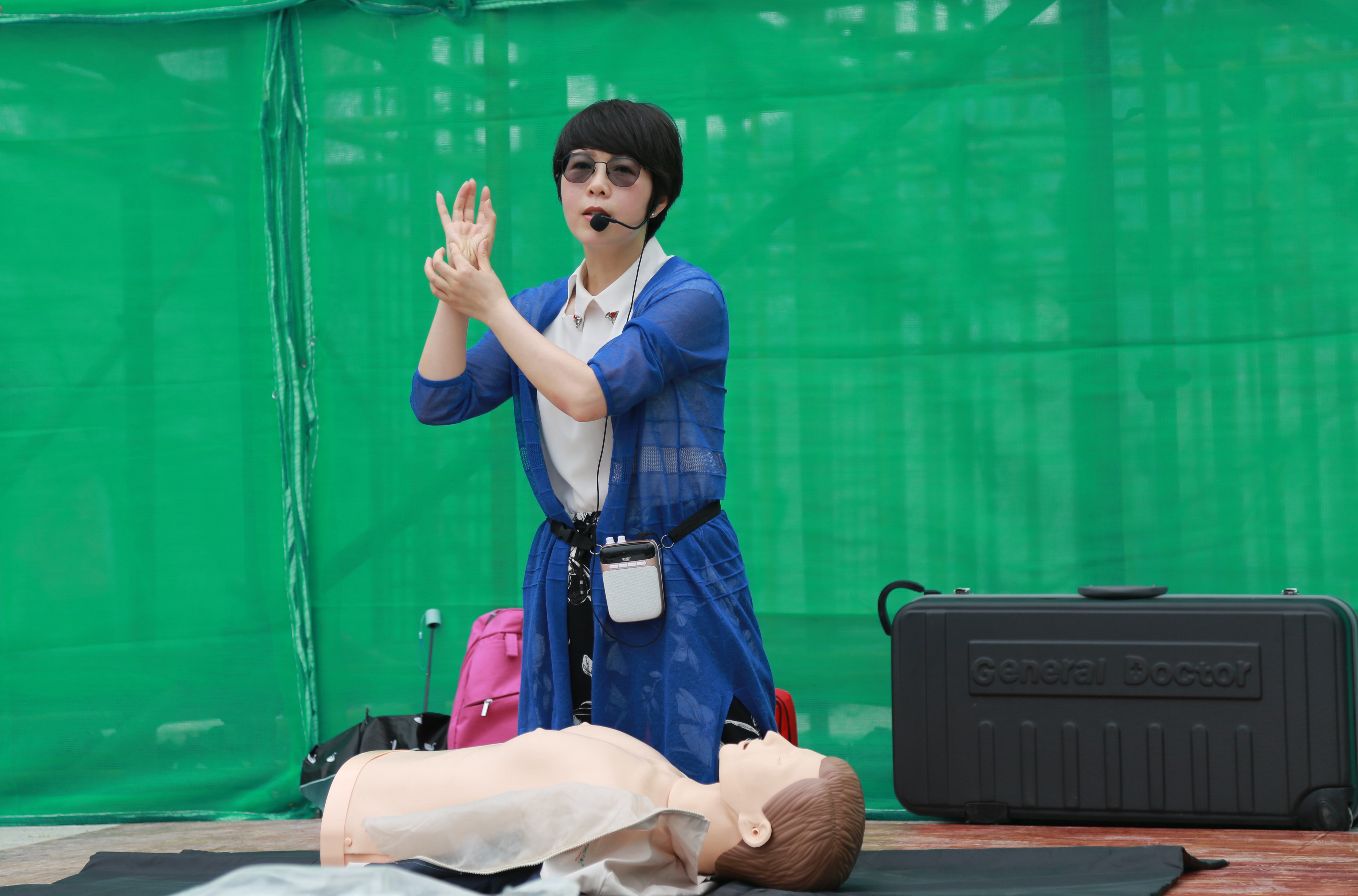 隨后,臺州職業技術學院副教授李美芬到場為大家開展心肺復蘇急救知識培訓。李美芬在現場結合模型詳細為大家講解心肺復蘇急救時的注意事項、操作方法、步驟流程等,并作了專業的示范?,F場人員踴躍上臺實踐學習,李美芬一一在旁邊作技術指導,強化了大家的學習效果。