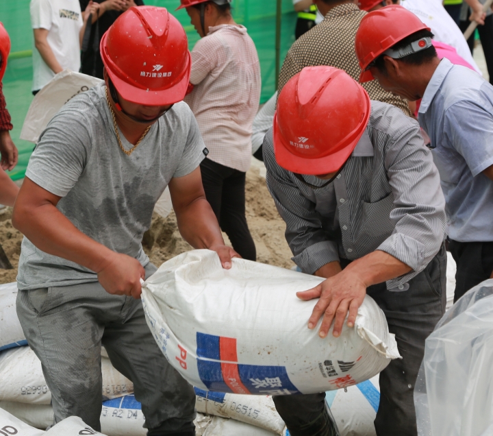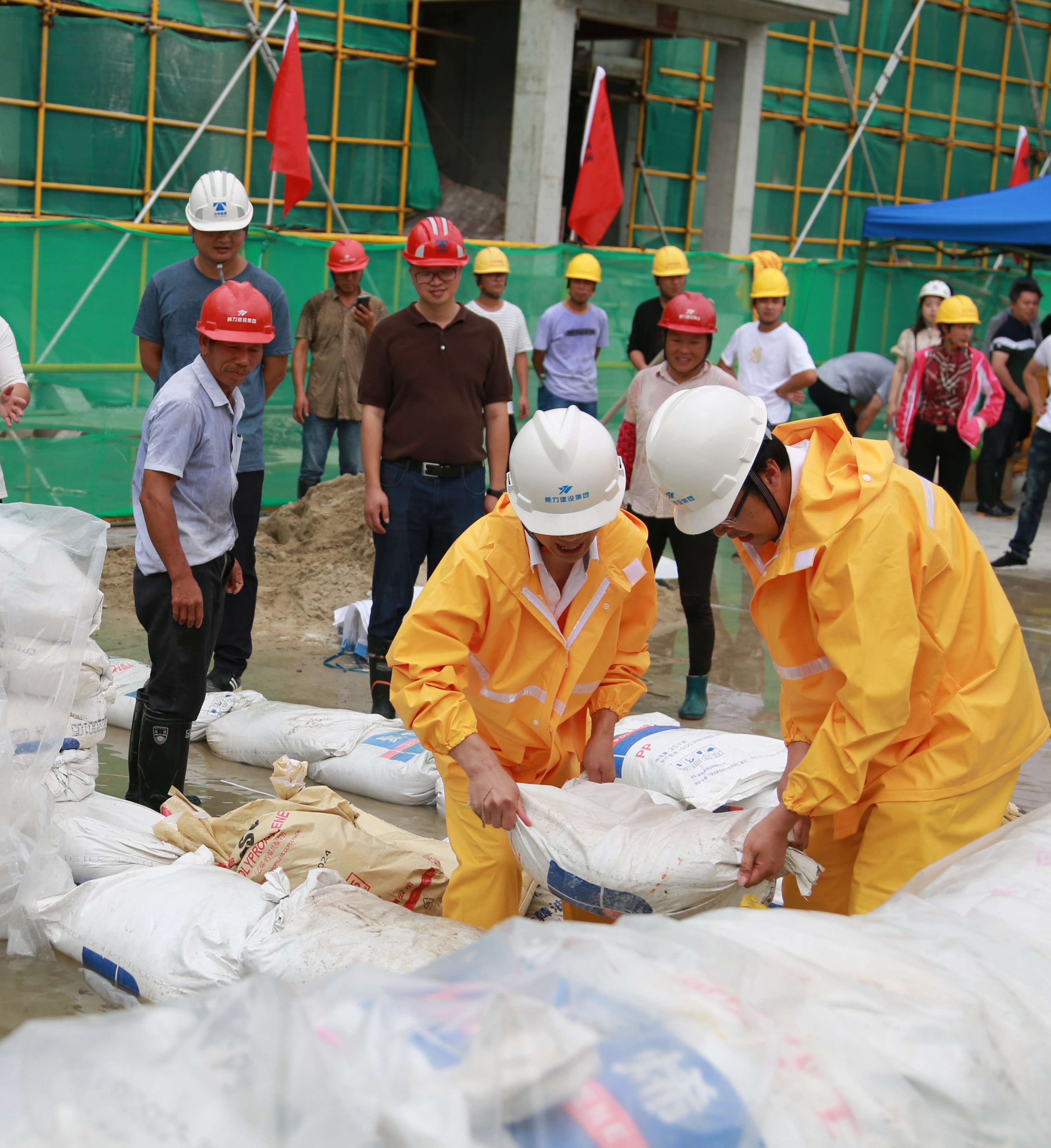 圖為模擬建筑工地面對洪水倒灌的現場應急搶險