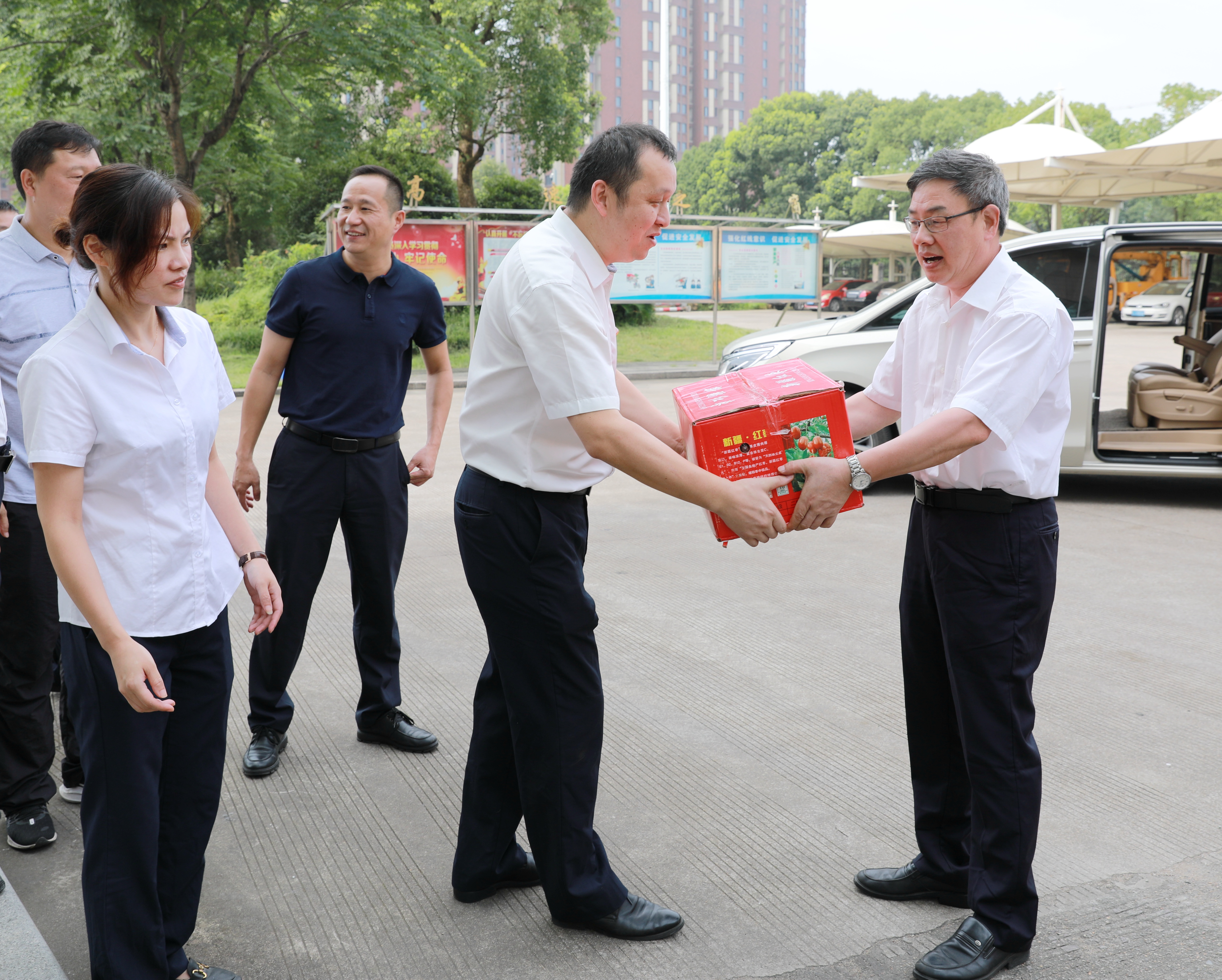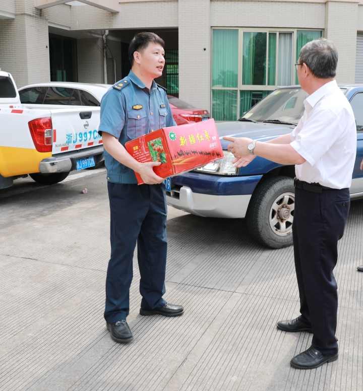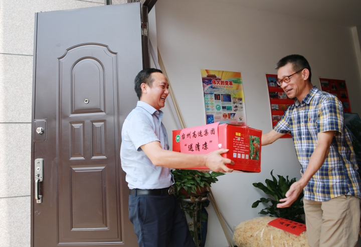 沁人心脾|臺州高速集團開展“夏日送清涼”活動 7月15日上午,臺州高速集團開展“夏日送清涼”活動。集團黨委書記、董事長、總經(jīng)理陳文波,副總經(jīng)理陳保衛(wèi)、羅小將、章海峰、工會主席項同富兵分兩路,帶領(lǐng)送清涼慰問組同志,深入高速交警、路政、匯通養(yǎng)護公司、各收費所、隧道所、中心、子公司等單位看望慰問值守人員并送去慰問品,向冒著高溫酷暑辛勤工作的工作人員表示敬意和慰問。感謝廣大員工在高溫下堅守崗位、辛勤勞動,集團領(lǐng)導親手送上防暑降溫的紅棗、綠豆、蓮子、飲料等物資,為在炎炎夏日中堅持工作的一線廣大人員送去了絲絲清涼。