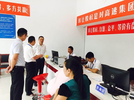 圖為集團(tuán)副董事長(zhǎng)、總經(jīng)理張建平在天臺(tái)收購(gòu)點(diǎn)詳細(xì)詢(xún)問(wèn)收購(gòu)工作具體開(kāi)展情況 張建平向各地方政府前期對(duì)公司股權(quán)收購(gòu)工作的支持表示感謝,他介紹了當(dāng)?shù)嘏_(tái)州高速股權(quán)收購(gòu)進(jìn)展情況,同時(shí)闡明收購(gòu)工作中存在的困難,需要地方政府繼續(xù)對(duì)我們的工作給予支持和幫助。三地政府都表示一定會(huì)全力支持這項(xiàng)工作。仙居縣分管公司股權(quán)收購(gòu)的常務(wù)副縣長(zhǎng)說(shuō),“放心吧,我們一起想辦法,先從持股較多的法人股入手,再化大力氣做小股東工作,一定會(huì)圓滿(mǎn)完成任務(wù)?!?/span> 張建平一行先后來(lái)到三地股權(quán)收購(gòu)點(diǎn),向收購(gòu)一線的工作人員表示親切的問(wèn)候。張建平對(duì)大家的工作給予肯定,感謝所有人勤勤懇懇,無(wú)私付出,并希望大家繼續(xù)努力,共同實(shí)現(xiàn)目標(biāo)。工作人員詳細(xì)介紹了日常具體工作方法,他們緊跟公司股權(quán)收購(gòu)總體布局,并結(jié)合當(dāng)?shù)靥厥馇闆r,因地制宜,有序靈活地開(kāi)展股權(quán)收購(gòu)工作。