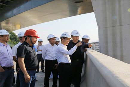圖為副市長張加波在6#立交橋上聽取工作匯報